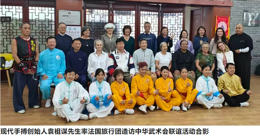 现代手搏创始人袁祖谋先生率法国旅行团造访中华武术会联谊活动合影